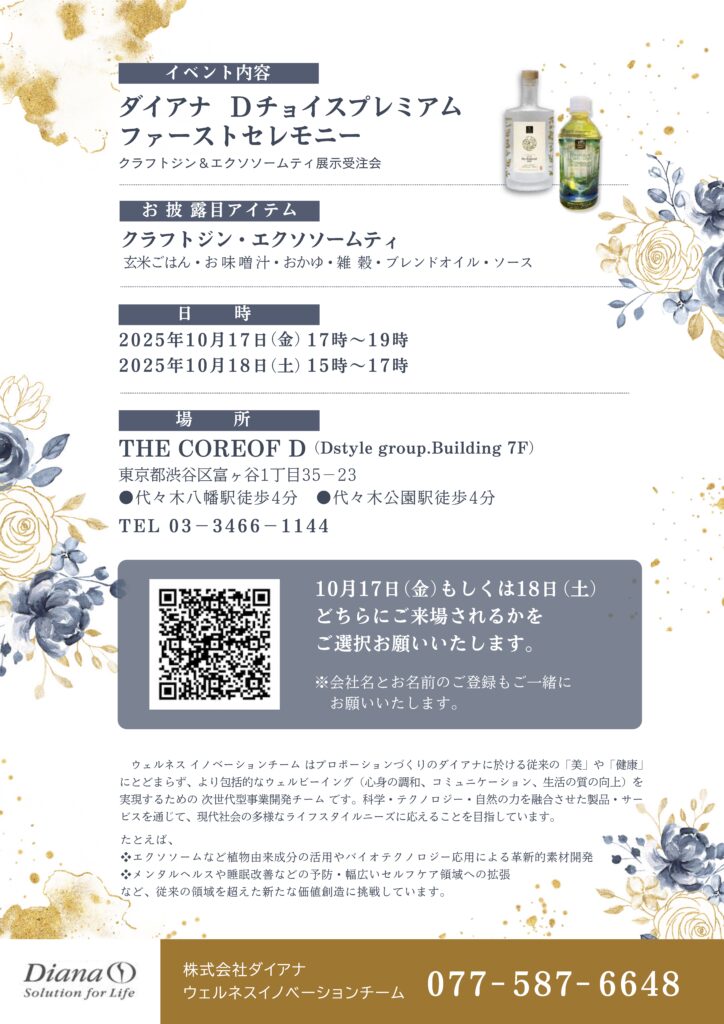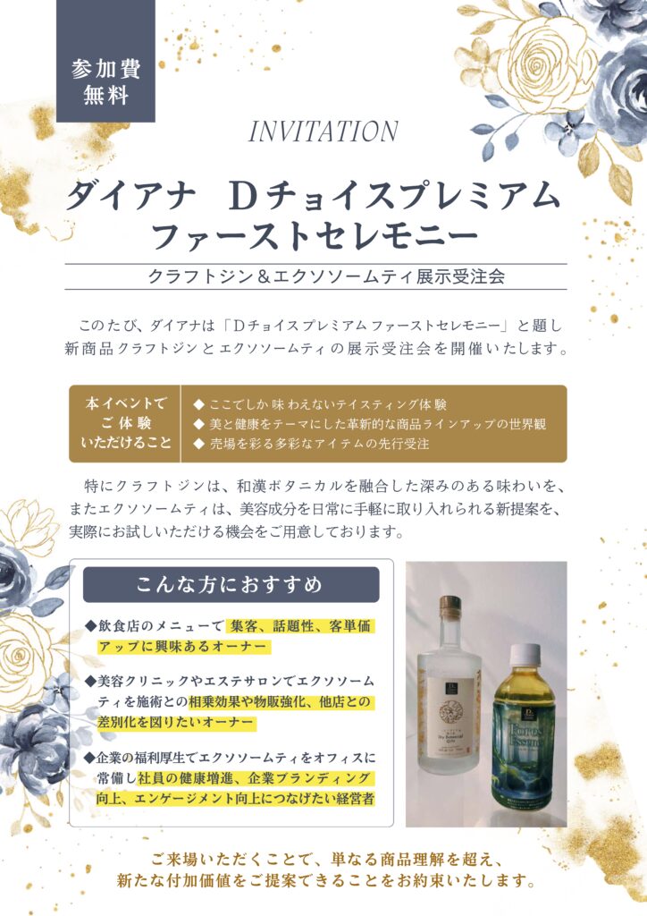 ダイアナ D チョイスプレミアム ファーストセレモニー 〜クラフトジン&エクソソームティ展示受注会〜